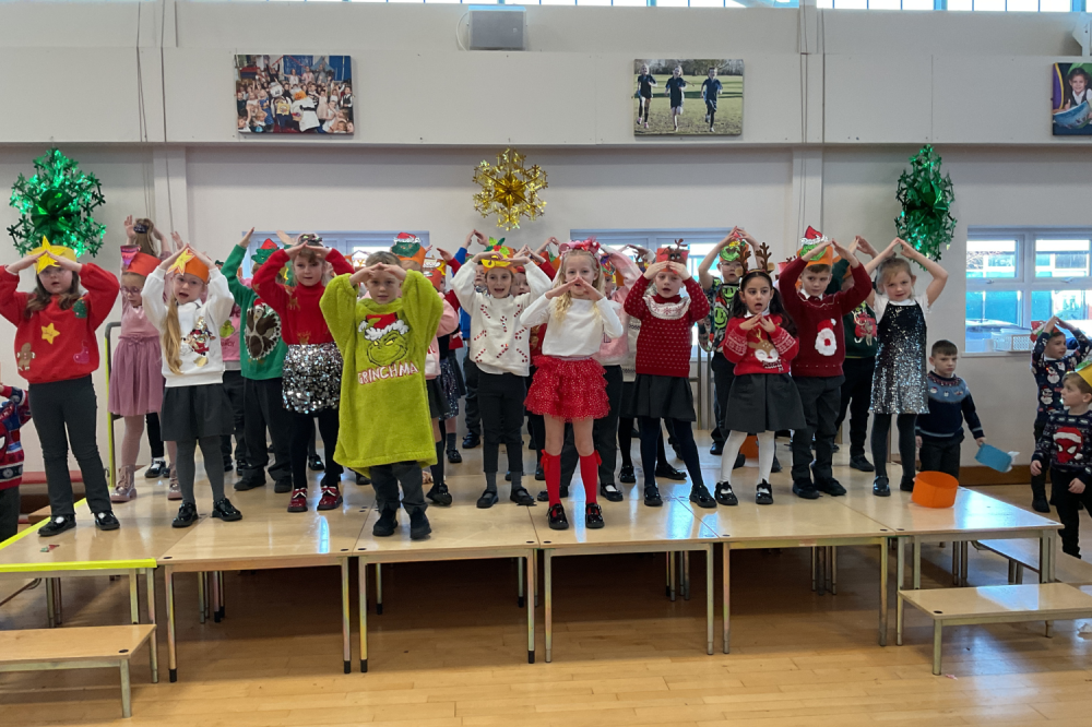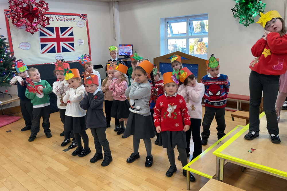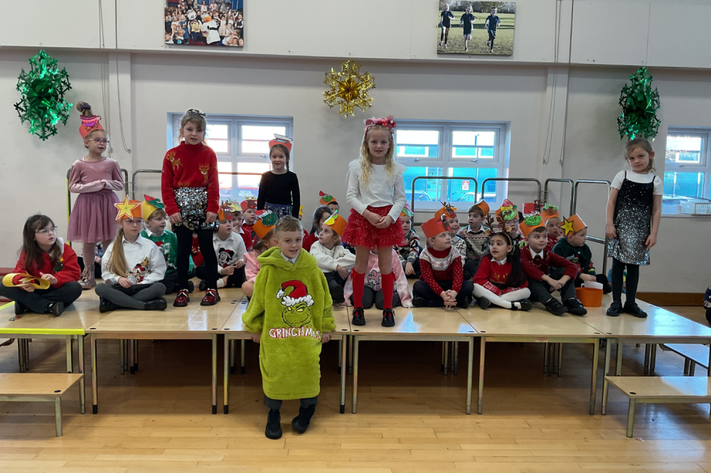 Key Stage 1 delighted their audience with a wonderfully festive performance of ‘The Grinch’. The children sang familiar favourites, including Jingle Bells, Starry Night, and You’re a Mean One, Mr. Grinch, bringing each song to life with their own creative actions.
